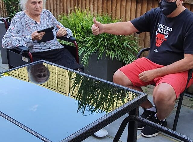 The restrictions on access to outside visiting have been slightly eased for those care homes who are COVID free but face coverings and social distancing will still need to remain in place when families visit their loved ones.